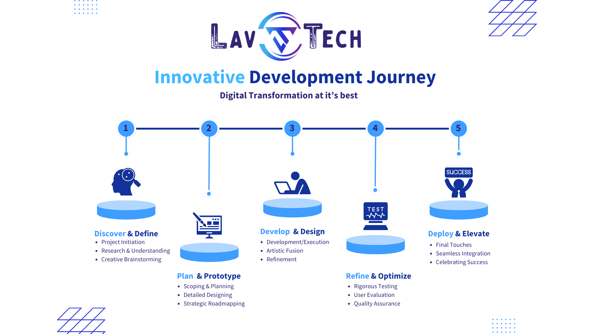 This structured breakdown serves as a beacon, guiding visitors through LavTech’s development process—whether it’s web/app development or design services. It offers a glimpse into our comprehensive approach and meticulous attention to detail, showcasing how LavTech transforms ideas into impactful digital realities.